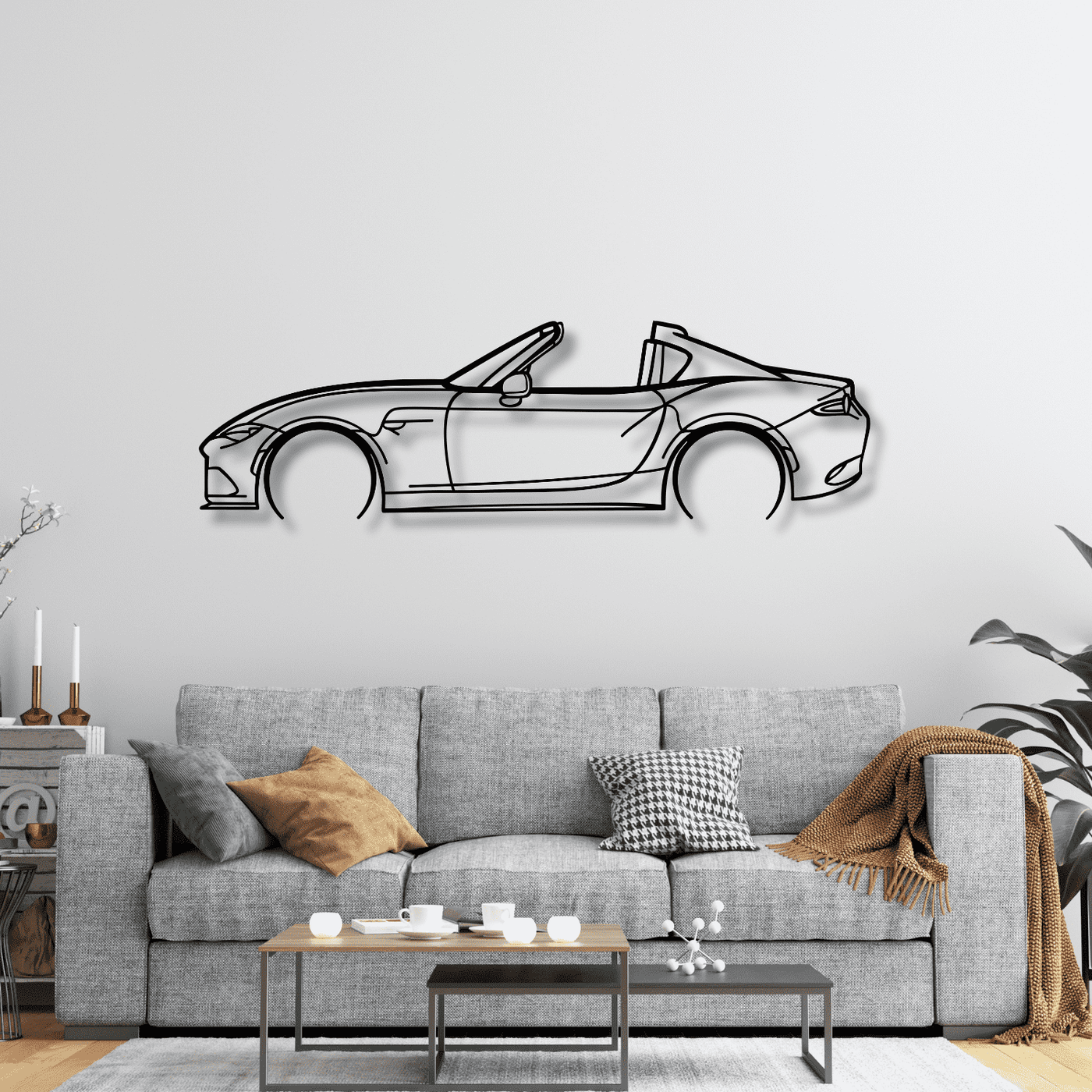 Give the perfect gift with this beautiful car metal wall art. Handcrafted with love and care,to be cherished for years to come. Show your loved ones how much you care with this exquisite handmade artwork. The intricate details and unique design make this item truly special and unlike any other. Whether you are looking for something to brighten up a room or to express your appreciation, this piece is perfect for any occasion. Give the perfect gift with this beautiful Mazda MX-5 RF car silhouette metal wall art.